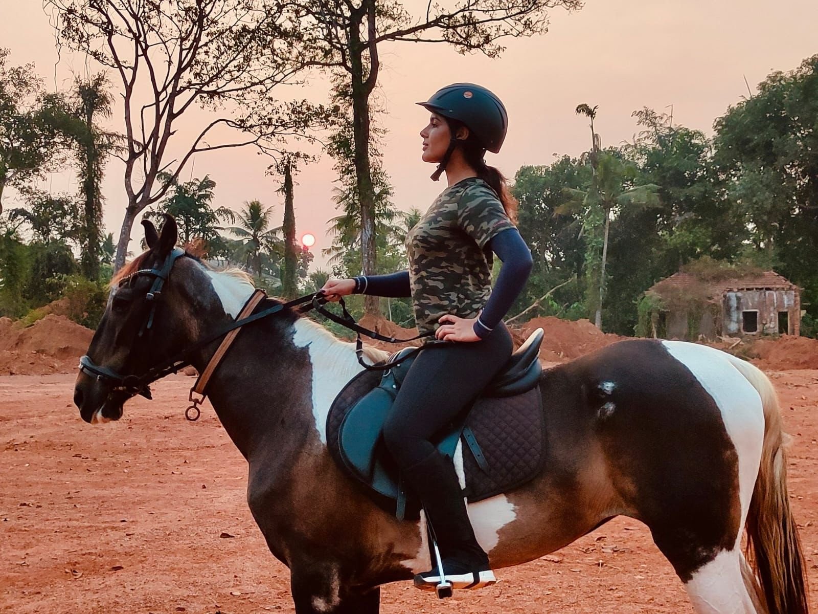 ‘சுயம்பு’ படத்திற்காக குதிரை ஏற்ற பயிற்சியில் நடிகை சம்யுக்தா