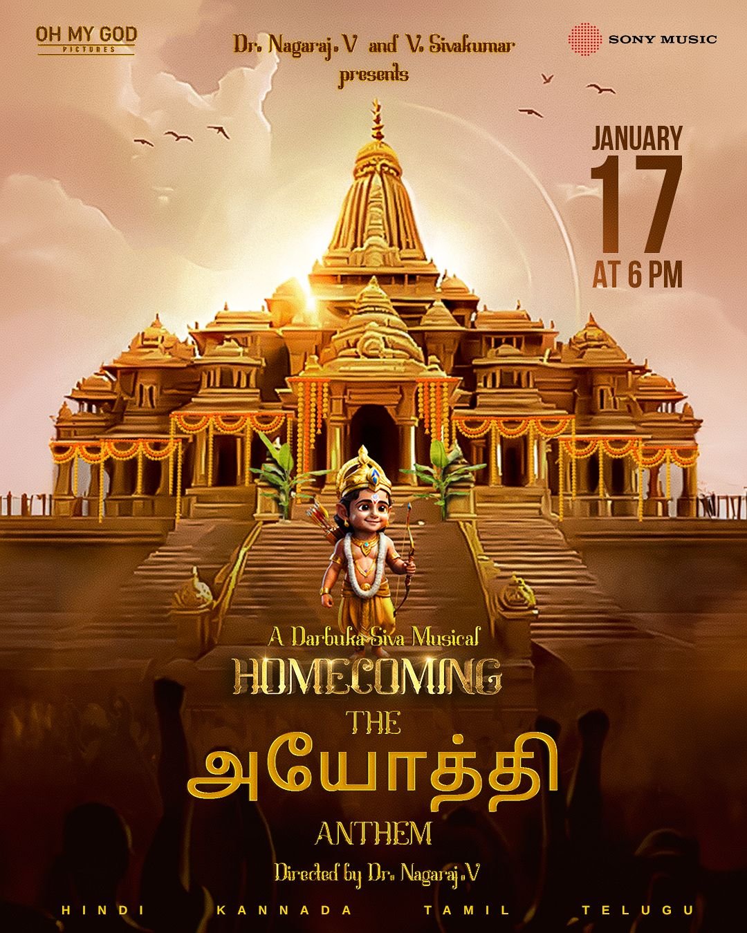#JaiShreeRam #RamLalla #Ayodhya Anthem #Homecoming #OhMyGodPictures #OMG #OMGPictures #NagarajV #DrNagarajV #DarbukaSiva #SonyMusic #SonyMusicSouth