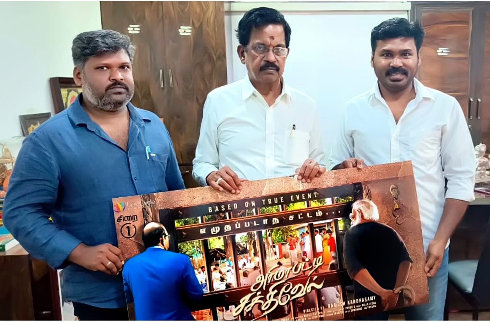 Life Cycle Creations சார்பில் தயாரிப்பாளர் பவன் K மற்றும் அஜிஸ் P ஆகியோர் தயாரிப்பில், அறிமுக இயக்குநர் ரமேஷ் கந்தசாமி இயக்கத்தில் சமூக அக்கறைமிக்க சோஷியல் டிராமா திரைப்படமாக உருவாகியுள்ள படம் “அரிமாபட்டி சக்திவேல்”. இப்படத்தின் ஃபர்ஸ்ட்லுக்கை முன்னணி இயக்குநர்கள் கே எஸ் ரவிக்குமார், கரு பழனியப்பன், தயாரிப்பாளர் கலைப்புலி S. தாணு இணைந்து வெளியிட்டுள்ளனர்.