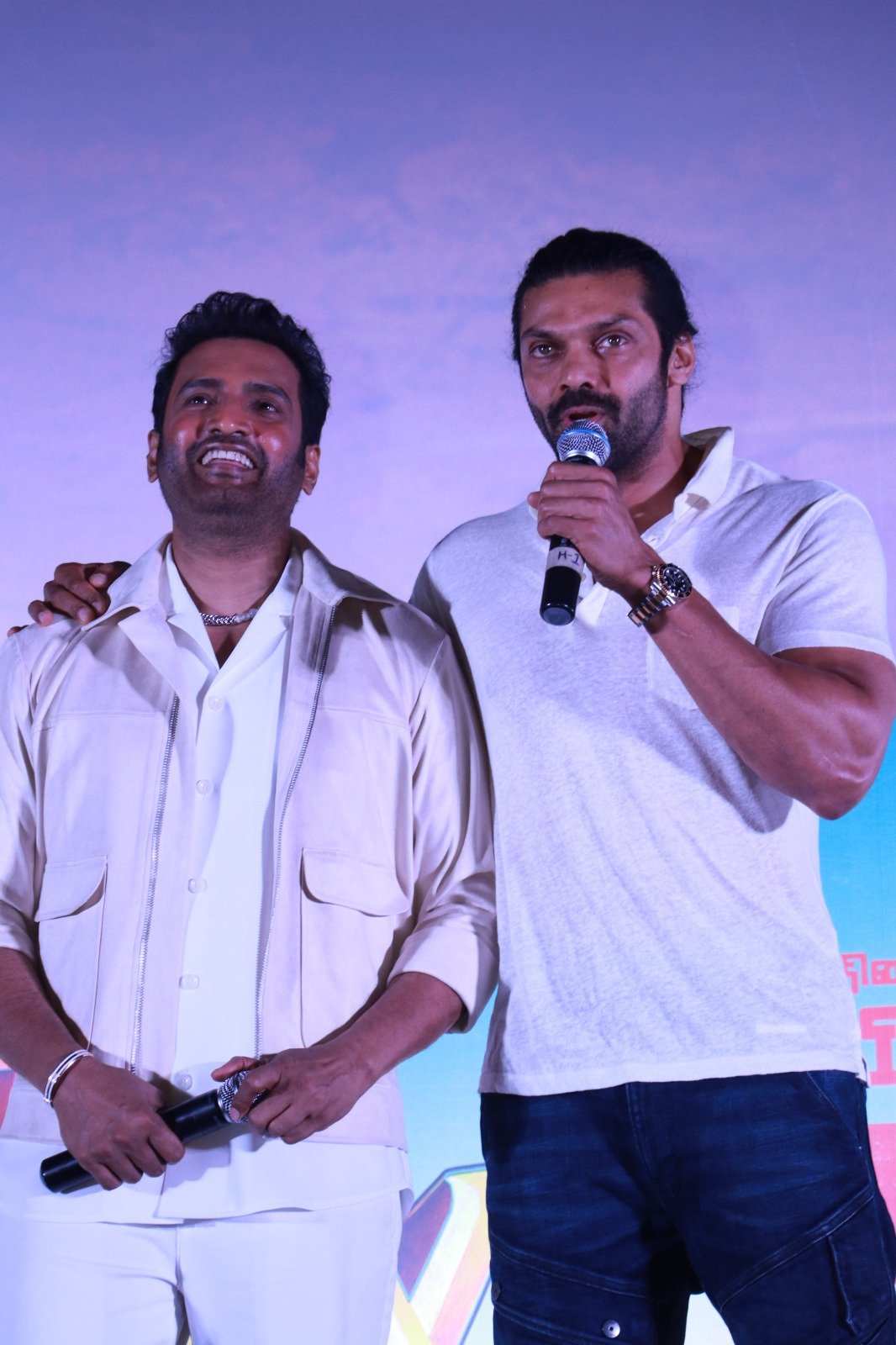 நடிகர் ஆர்யா, “’பாஸ் என்கிற பாஸ்கரன்’ படம் நடிக்கும்போது எனக்கும் சந்தானத்திற்கும் ஒரே கேரவன் தான். அப்போது கேரவனுக்குள்ளேயே சந்தானத்தைப் பார்க்க ரசிகர் ஒருவர் வந்துவிட்டார். அந்த அளவுக்கு சந்தானம் மீது ரசிகர்கள் அன்பாக உள்ளனர். நிச்சயம் ‘வடக்குப்பட்டி ராமசாமி’ ஹிட்டாகும். இயக்குநர் கார்த்திக்கும் அதன் மீது நம்பிக்கை வைத்துள்ளார். இந்தப் படத்தைத் தயாரித்துள்ள விஸ்வா தெலுங்கில் நிறைய ஹிட் படங்களைக் கொடுத்துள்ளார். தமிழில் இந்தப் படமும் அவருக்கு ஹிட் கொடுக்கும். 65 நாட்கள் ஷூட்டிங் என்றதும் ஹெல்த் டிப்ஸ் எல்லாம் கேட்டார். நானும் சொன்னேன். பிறகு கேட்டால் அவர் மேகா ஆகாஷூடன் ஷெட்டில் ஆடிக்கொண்டிருக்கிறேன் என்றார். அந்த அளவுக்கு ஹெல்த் கான்ஷியஸ் அவருக்கு உண்டு. படத்தில் அனைவரும் சிறப்பாக உழைப்பைக் கொடுத்துள்ளனர். நானும் சந்தானமும் இணைந்து அட்வென்ச்சர் ஃபேண்டஸி கதையில் கார்த்திக் யோகி இயக்கத்தில் சீக்கிரம் நடிக்க இருக்கிறோம்” என்றார்.