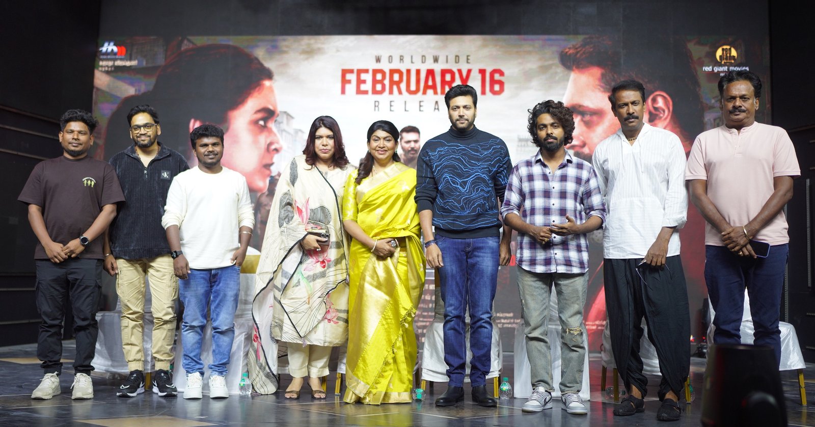 Home Movie Makers சார்பில் தயாரிப்பாளர் சுஜாதா விஜய்குமார் தயாரிப்பில், தமிழ் திரைத்துறையின் முன்னணி நட்சத்திர நடிகர் ஜெயம் ரவி நடிப்பில், அறிமுக இயக்குநர் அந்தோணி பாக்யராஜ் இயக்கத்தில் உருவாகியுள்ள ஆக்சன் கமர்ஷியல் திரைப்படம் “சைரன்”. பிப்ரவரி 16 ஆம் தேதி திரையரங்குகளில் வெளியாகவுள்ள நிலையில் இப்படத்தின் பத்திரிக்கையாளர் சந்திப்பு, திரைப்படக்குழுவினர் கலந்துகொள்ள பத்திரிக்கை ஊடக நண்பர்கள் முன்னிலையில் நடைபெற்றது.
