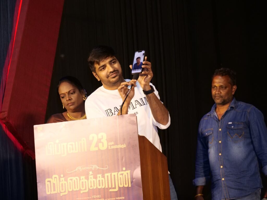 White Carpet Films சார்பில், K விஜய் பாண்டி தயாரிப்பில், அறிமுக இயக்குநர் வெங்கி இயக்கத்தில், சதீஷ் நாயகனாக நடிக்கும், வித்தியாசமான ஹெய்ஸ்ட் திரைப்படம் “வித்தைக்காரன்”. ப்ளாக் காமெடியில் உருவாகியுள்ள இப்படம் பிப்ரவரி 23 ஆம் தேதி திரைக்கு வரவுள்ள நிலையில், திரைப்படக்குழுவினர் கலந்துகொள்ள பத்திரிக்கை ஊடக நண்பர்கள் முன்னிலையில் நடைபெற்றது.