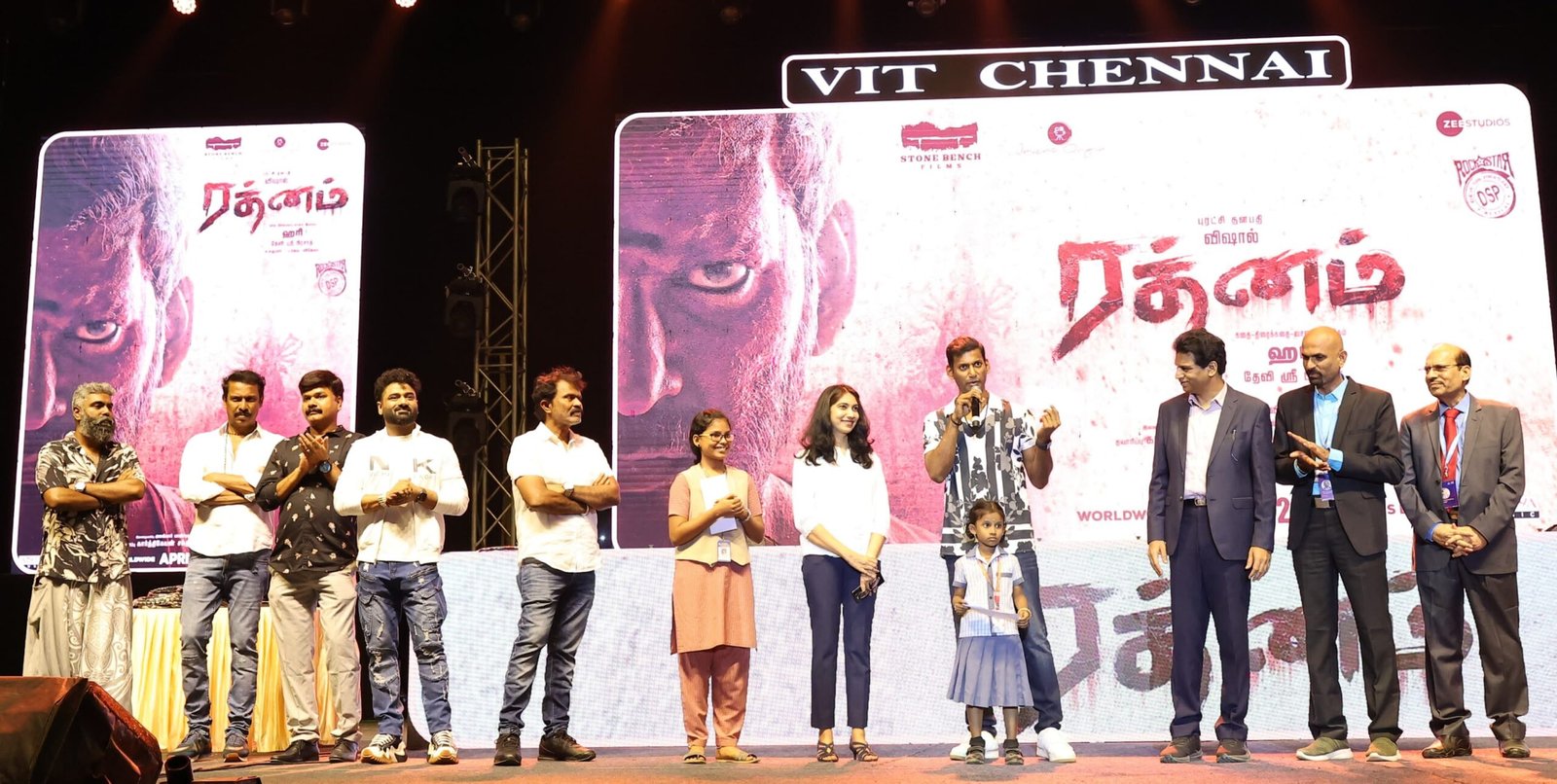 ஏப்ரல் 26 அன்று ‘ரத்னம்’ திரையரங்குகளில் வெளியாக உள்ள நிலையில், சென்னை விஐடி பல்கலைக்கழகத்தில் சனிக்கிழமை மாலை 12,000 +மாணவர்கள் கலந்துகொண்ட வைப்ரன்ஸ்’24 நிகழ்ச்சியில் இத்திரைப்படத்தின் முதல் பாடலான Don’t worry Don’t worry da Machi (‘டோன்ட் ஓரி டோன்ட் ஒரிடா மச்சி’) வெளியிடப்பட்டது. மாணவர்களை இப்பாடலுக்கு உற்சாக வரவேற்பு வழங்கினர்.