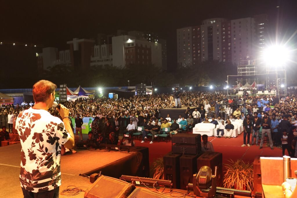 “வருங்கால இந்தியாவுக்கு வணக்கம். இந்த நிகழ்ச்சியின் மேடைக்கு உங்கள் மத்தியில் இருந்து நான் வர காரணம் உங்களில் ஒருவன் நான் என்பதால் தான். கல்லூரியில் படிக்கும்போது கலாச்சார பிரிவின் செயலாளராக இருந்து கலை நிகழ்ச்சிகளை ஏற்பாடு செய்தவன் என்ற முறையில் இந்த பணி எவ்வளவு கடினமானது என்பது எனக்கு நன்றாகத் தெரியும். உங்கள் அனைவருக்கும் மனமார்ந்த வாழ்த்துகள்.