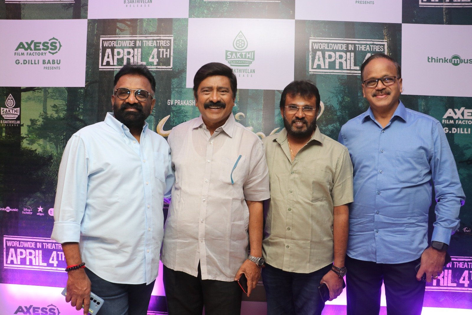 ஆக்சஸ் ஃபிலிம் ஃபேக்டரி தயாரிப்பாளர் டில்லி பாபு, “அம்மா கிரியேஷன்ஸ், சத்ய ஜோதி போன்ற பேனர்களுக்காகவே நான் போய் படங்கள் பார்த்த காலம் உண்டு. தனஞ்செயன் சார் தமிழ் சினிமாவின் என்சைக்ளோபீடியா. கிளைமாக்ஸ் காட்சிக்கு முந்தின நாள் யானக்கு மதம் பிடித்து விட்டது. அதற்காக சில காலம் காத்திருந்தோம். படம் சிறிய பட்ஜெட் என்றாலும் டெக்னீஷியன்ஸ் எல்லோருமே பெரியவர்கள் தான். பாலக்காட்டில் கிளைமாக்ஸ் ஷூட்டு ஒரு வாரத்திற்க்கு மட்டும் ஒன்றரை கோடி செலவானது. பாரதிராஜா சார், ஜிவி பிரகாஷ், இவனா என எல்லாருமே சிறப்பாக நடித்துள்ள படம் வெற்றி அடைய வேண்டும். பாரதிராஜா சாரின் பயோபிக் உருவாகிறது என்றால் அதை வெற்றிமாறன் இயக்க வேண்டும் நாங்கள் தயாரிக்க வேண்டும் என்ற கோரிக்கையை முன்வைக்கிறோம்” என்றார்.