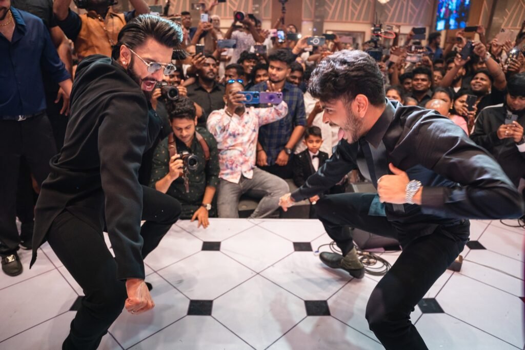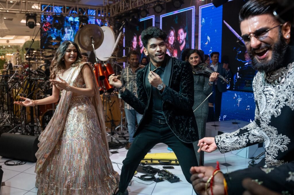 மிகவும் கோலாகலமாக நடைபெற்ற இந்த நிகழ்வில், பிரபல பாலிவுட் நடிகர் ரன்வீர் சிங் நடனமாடி மணமக்களை உற்சாகப்படுத்தினார். டிரம்ஸ் சிவமணி இசைக்க நடனமாடிய ரன்வீர் சிங்குடன் மணமக்கள் ஐஸ்வர்யா ஷங்கர் – தருண் கார்த்திகேயன், அதிதி ஷங்கர், அர்ஜித் ஷங்கர், இயக்குனர் அட்லி ஆகியோரும் சேர்ந்து சந்தோசமாக நடனமாடி நிகழ்ச்சியை மேலும் சிறப்பித்தனர்.