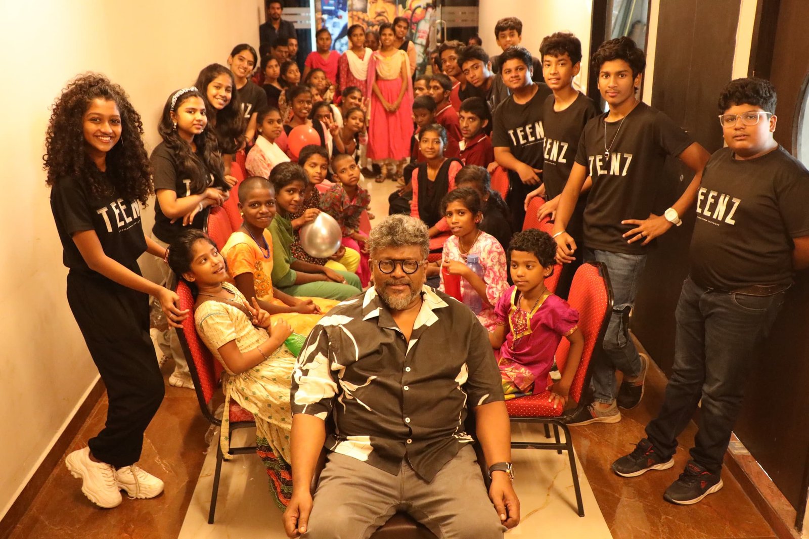 அன்பு இல்லம் மற்றும் Hope Public Charitable Trust குழந்தைகளுடன் டீன்ஸ் படத்தின் நன்றி விழா கொண்டாடிய இயக்குனர் R.பார்த்திபன். த்ரில்லர், ஹாரர் மற்றும் சைன்ஸ் ஃபிக்ஷன் என்ற வித்தியாசமான கதை, திரைக்கதை, வசனம் எழுதி பதிமூன்று குழந்தைகள் முதன்மை கதாபாத்திரத்தில் நடித்து உலகமெங்கும் கடந்த 12 -ம் தேதி வெளியாகி நல்ல வரவேற்பை பெற்ற நிலையில் இரண்டே நாட்களில் அதிக திரையரங்கில் அதிக காட்சிகளுடன் உலகமெங்கும் வெற்றிநடை போடுகிறது.