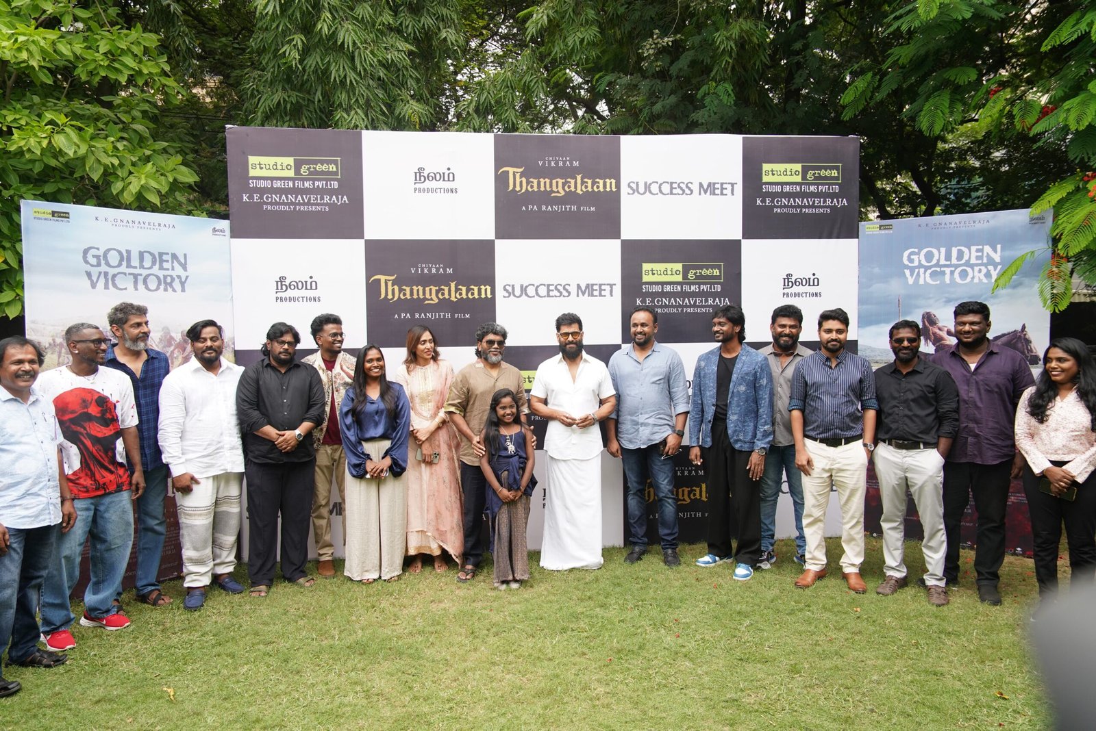 ஸ்டுடியோ கிரீன் நிறுவனம் மற்றும் நீலம் புரொடக்ஷன்ஸ் இணைந்து தயாரித்து, இயக்குநர் பா. ரஞ்சித்தின் இயக்கத்தில், சீயான் விக்ரமின் நடிப்பில் கடந்த ஆகஸ்ட் 15 ஆம் தேதியன்று உலகம் முழுவதும் ஆயிரக்கணக்கான திரைகளில் தமிழ் மற்றும் தெலுங்கு மொழியில் வெளியான ‘தங்கலான்’ திரைப்படம்… வசூல் ரீதியாகவும், விமர்சன ரீதியாகவும் பிரம்மாண்டமான வெற்றியை பெற்றிருக்கிறது. தொடர்ந்து திரையரங்குகளில் ரசிகர்களின் பேராதரவுடன் வெற்றி நடை போட்டுக் கொண்டிருக்கும் தங்கலான் படத்திற்கு, ரசிகர்கள் மற்றும் ஊடகங்கள் வழங்கிய ஆதரவிற்கும், அன்பிற்கும் நன்றி தெரிவிக்கும் வகையில் படக் குழுவினர் விழா ஒன்றினை ஒருங்கிணைத்திருந்தனர்.