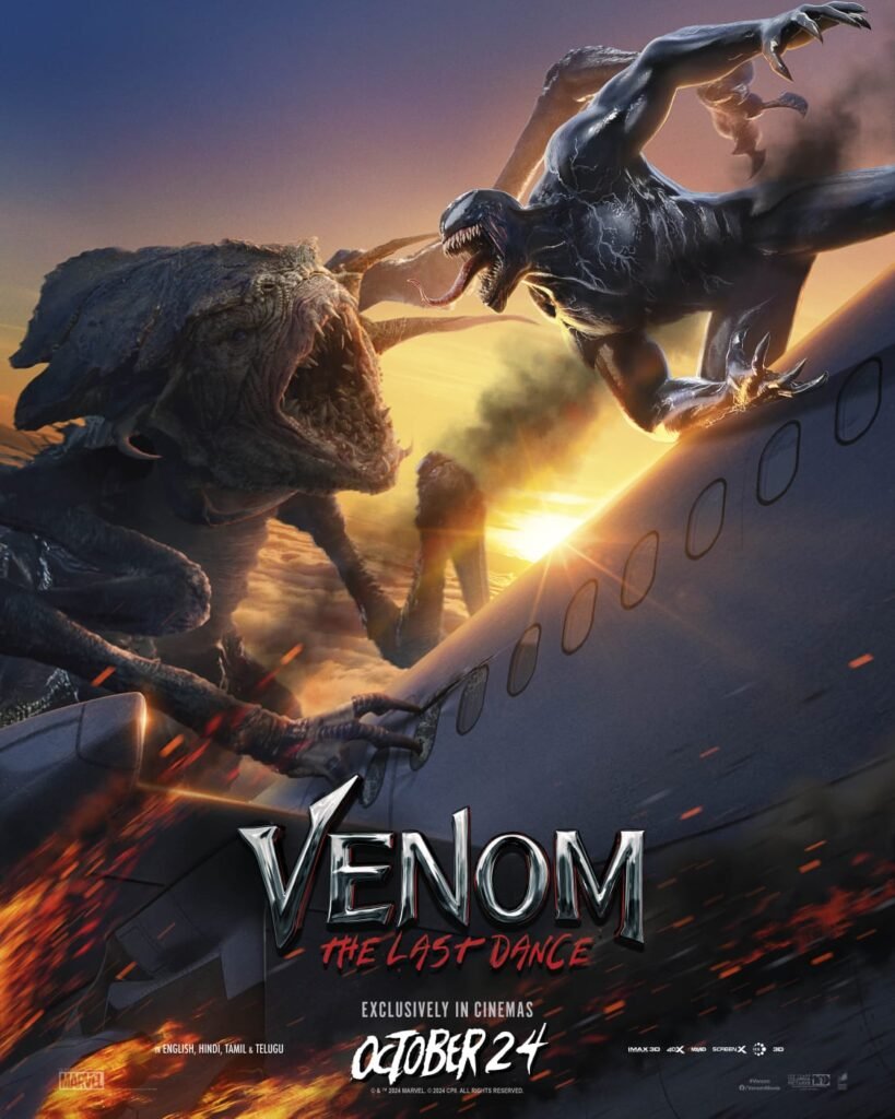 டாம் ஹார்டியின் ’வெனோம்: தி லாஸ்ட் டான்ஸ்’ படத்தின் இறுதிப் படம் அக்டோபர் 24ஆம் தேதி திரையரங்குகளில் வெளியாகும் என்று சோனி பிக்சர்ஸ் எண்டர்டெயின்மென்ட் இந்தியா அறிவித்துள்ளது. ரசிகர்களின் உற்சாகத்தை மேலும் அதிகரிக்கும் வகையில் வெனோம் மற்றும் விமானத்தின் மேல் உள்ள ஜெனோமார்ப் இருவரும் இருக்கும்படியான போஸ்டரும் வெளியாகியுள்ளது.