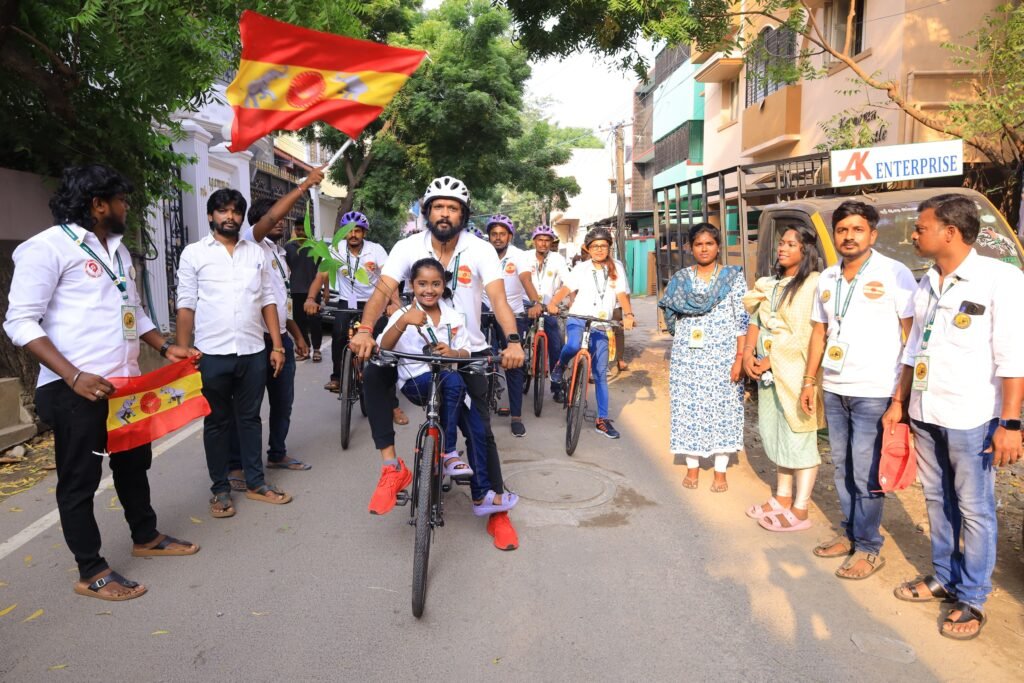 இந்த நிலையில், தமிழக வெற்றிக் கழகம் கட்சியின் முதல் மாநில மாநாடு நாளை (அக்டோபர் 27) விக்கிரவாண்டியை அடுத்த வி சாலையில் மிகவும் பிரமாண்டமாக நடைபெற இருக்கிறது. மாநாட்டை ஒட்டி நடிகர் சௌந்தரராஜா மற்றும் அவரது மண்ணுக்கும் மக்களுக்கும் அறக்கட்டளை சார்பில் சைக்கிள் பேரணி சென்னையில் இருந்து விக்கிரவாண்டி நோக்கி புறப்பட்டது.