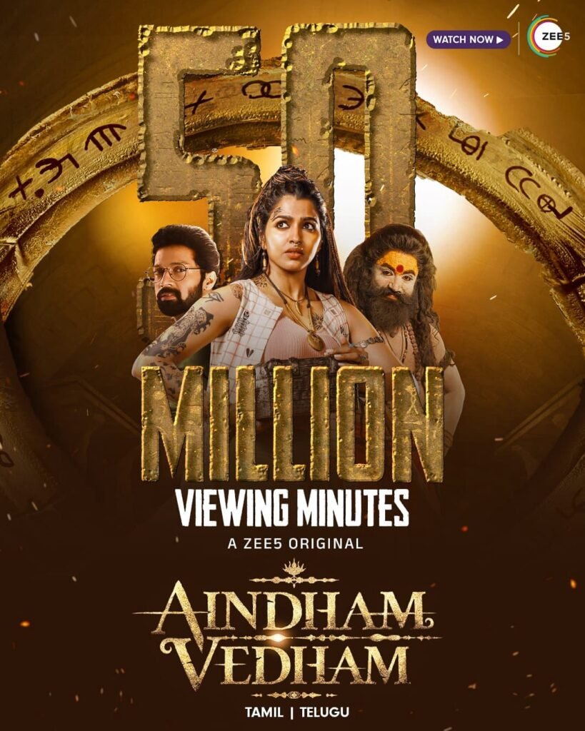 ZEE5 தளத்தில் சமீபத்தில் வெளியிடப்பட்ட ஐந்தாம் வேதம் சீரிஸ், பெரும் வரவேற்பைப் பெற்று வெற்றியடைந்துள்ளது. வெளியான குறுகிய காலத்தில் ZEE5 இல் டிஜிட்டல் பிரீமியர் மூலம், 50 மில்லியன் பார்வையாளர் நிமிடங்களைக் கடந்து, புதிய சாதனையைப் படைத்துள்ளது. கல்ட் கிளாசிக் மர்மதேசம் புகழ் இயக்குநர் நாகா இயக்கத்தில், அபிராமி மீடியா ஒர்க்ஸ் தயாரித்துள்ள இந்த சீரிஸில், சாய் தன்ஷிகா முதன்மைப் பாத்திரத்தில் நடித்துள்ளார். சந்தோஷ் பிரதாப், விவேக் ராஜகோபால், ஒய் ஜீ மகேந்திரா, கிரிஷா குருப், ராம்ஜி, தேவதர்ஷினி, மேத்யூ வர்கீஸ், மற்றும் பொன்வண்ணன் உட்பட பல முன்னணி நட்சத்திரங்கள் இணைந்து நடித்துள்ளனர்.