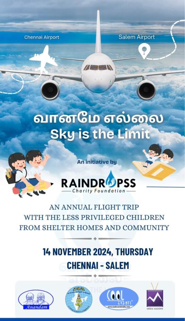 குழந்தைகள் தினத்தை முன்னிட்டு, சமூக செயல்பாடு மற்றும் உள்ளடக்கத்திற்கு அர்ப்பணிக்கப்பட்ட ரெயின்ட் ராப்ஸ் சமூக அமைப்பு தனது வருடாந்திர “வானமே எல்லை” நிகழ்வை ஆனந்தம் மற்றும் விஜிபி உலக தமிழ் சங்கத்துடன் இணைந்து நடத்த உள்ளது.