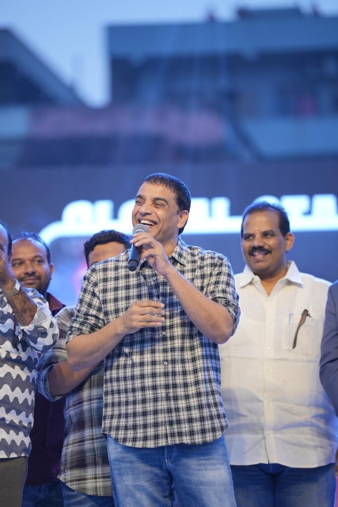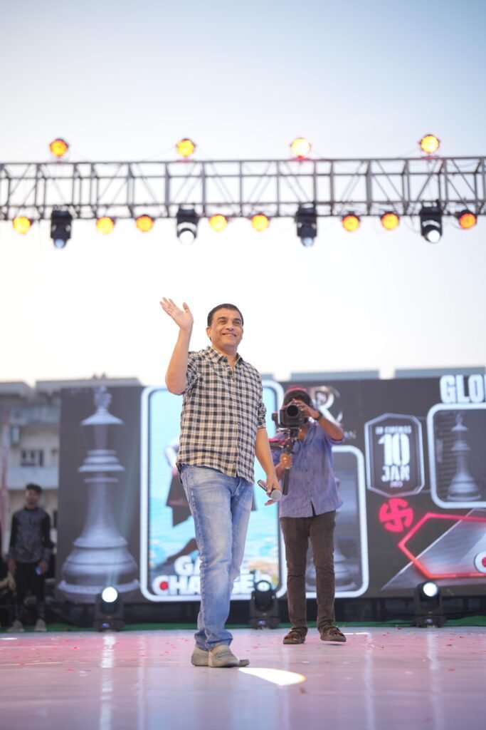தில் ராஜு மேலும் கூறுகையில், குளோபல் ஸ்டார் ரசிகர்களுக்கு இந்த சங்கராந்தி பிரமாண்டமான விருந்தாக இருக்கும் என்றார். “நான்கு வருடங்களுக்கு முன்பு ஷங்கர் சார் என்னிடம் கதை சொன்னபோது, நான் உணர்ந்ததைத்தான் இன்று படத்தைப் பார்த்த சிரஞ்சீவியும் உணர்ந்தார். ஐஏஎஸ் அதிகாரியாக, போலீஸ் அதிகாரியாக இரட்டை வேடத்தில் ராம்சரணின் முழுத்திறமையை, அதிரடி நடிப்பை நீங்கள் பார்க்கலாம். ஷங்கரின் பாடல்களை நீங்கள் கொண்டாடுவீர்கள், 10 முதல் 12 நாட்கள் வரை அவர் பாடல்களைப் படமாக்குவார், அதே போல் படமும் 2 மணி நேரம் 45 நிமிடம் தாருங்கள் என்றேன், சொன்ன நேரத்தில் கமர்ஷியல் ரீதியிலான அனைத்து அம்சங்களையும் உள்ளடக்கி, ஒரு அற்புதமான ப்ளாக்பஸ்டர் படத்தைத் தந்துள்ளார்.”