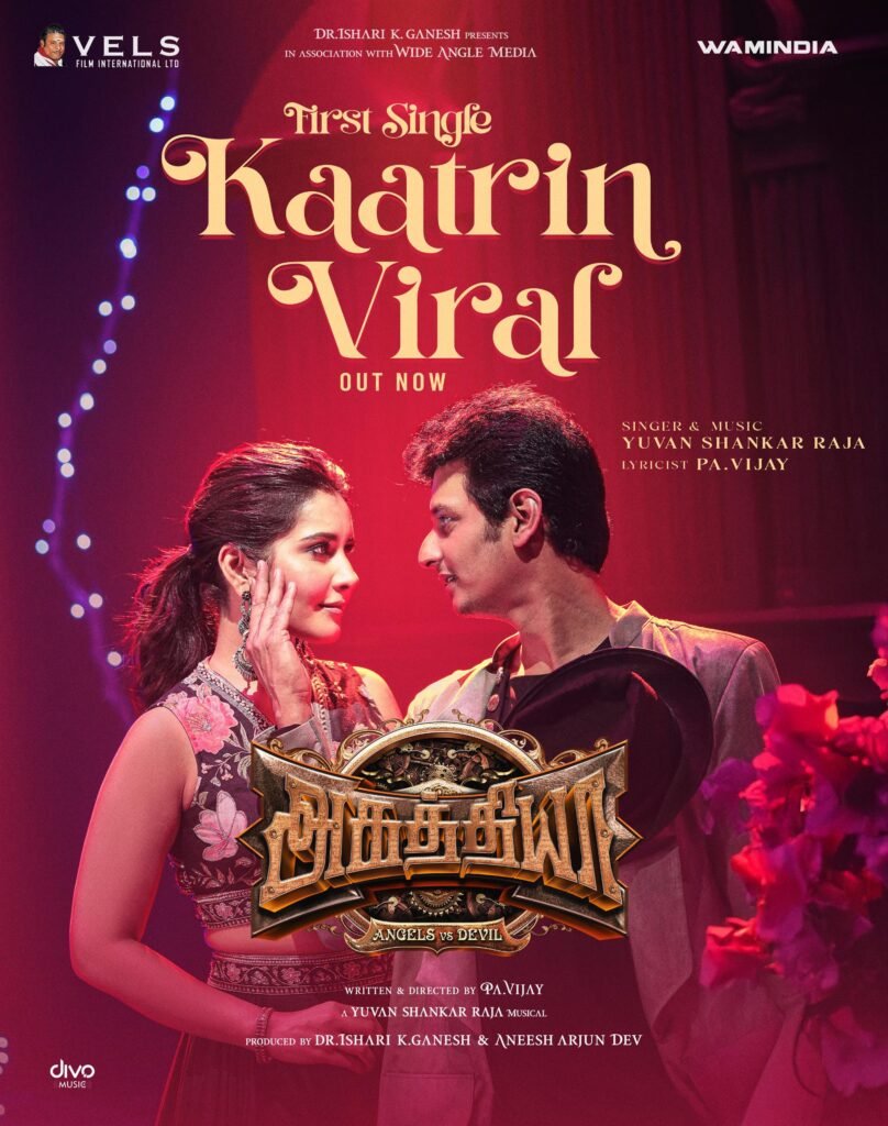 தமிழ்த் திரையுலகில் பெரிதும் எதிர்பார்ப்பை ஏற்படுத்தியிருக்கும், பிரம்மாண்டமான ஃபேண்டஸி திரைப்படமான “அகத்தியா” திரைப்படத்தின், முதல் சிங்கிள் பாடல், “காற்றின் விரல்” இன்று அதிகாரப்பூர்வமாக வெளியிடப்பட்டது. மேஸ்ட்ரோ யுவன் ஷங்கர் ராஜாவின் அற்புதமான இசை, அதிர வைக்கும் விஷுவல்களுடன், திரைப்பட ஆர்வலர்களுக்கு ஒரு மறக்க முடியாத அனுபவமாக உள்ளது இப்பாடல். இப்பாடல் 2025 ஆம் ஆண்டின் மிகப்பெரிய திரைப்படங்களில் ஒன்றாக “அகத்தியா” இருக்கும் என்று உறுதியளிக்கிறது.