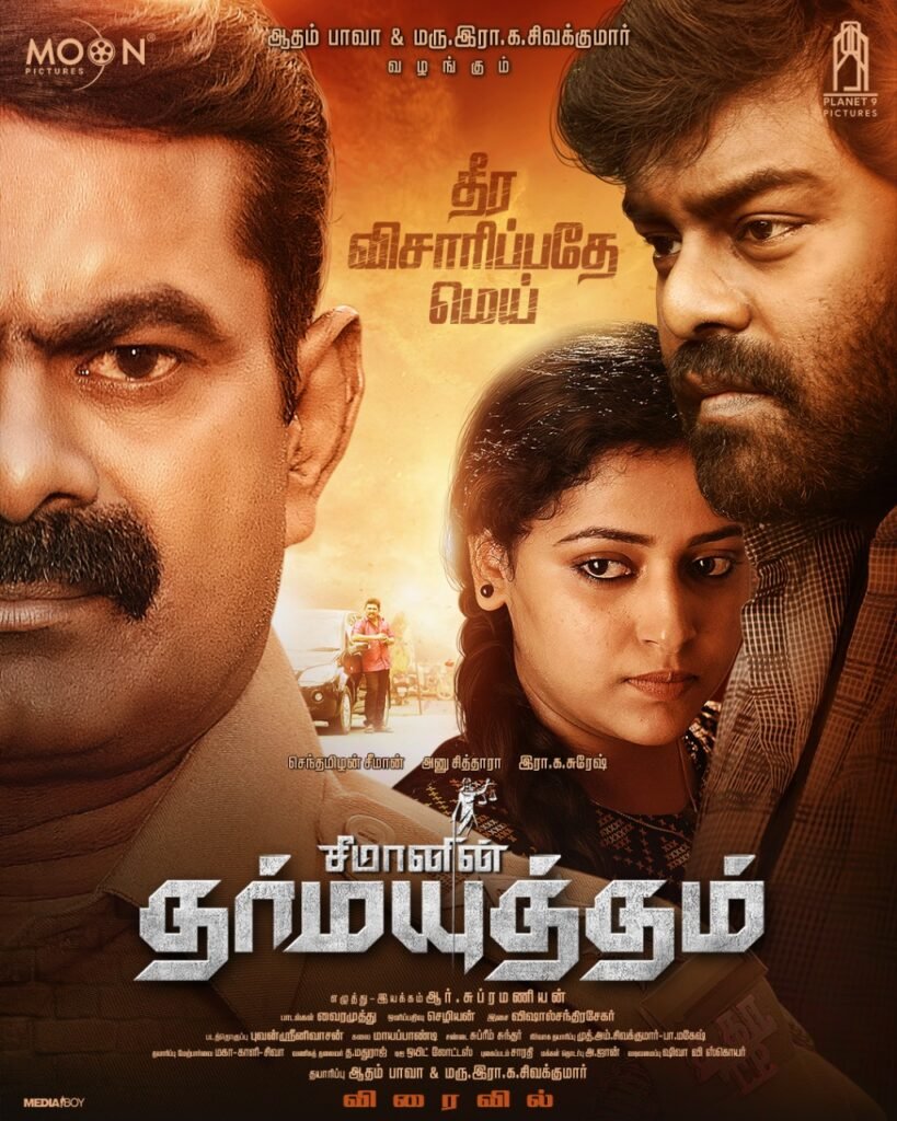 ‘தப்பாட்டம்’, ‘ஆண்டி இண்டியன்’, ‘உயிர் தமிழுக்கு’ ஆகிய வெற்றிப் படங்களைத் தொடர்ந்து இயக்குநர், தயாரிப்பாளர் மூன் பிக்சர்ஸ் ஆதம் பாவா மற்றும் பிளானெட் 9 பிக்சர்ஸ் மருத்துவர் இரா.க. சிவக்குமார் இணைந்து தயாரித்திருக்கும் படம் சீமானின் “தர்மயுத்தம்”