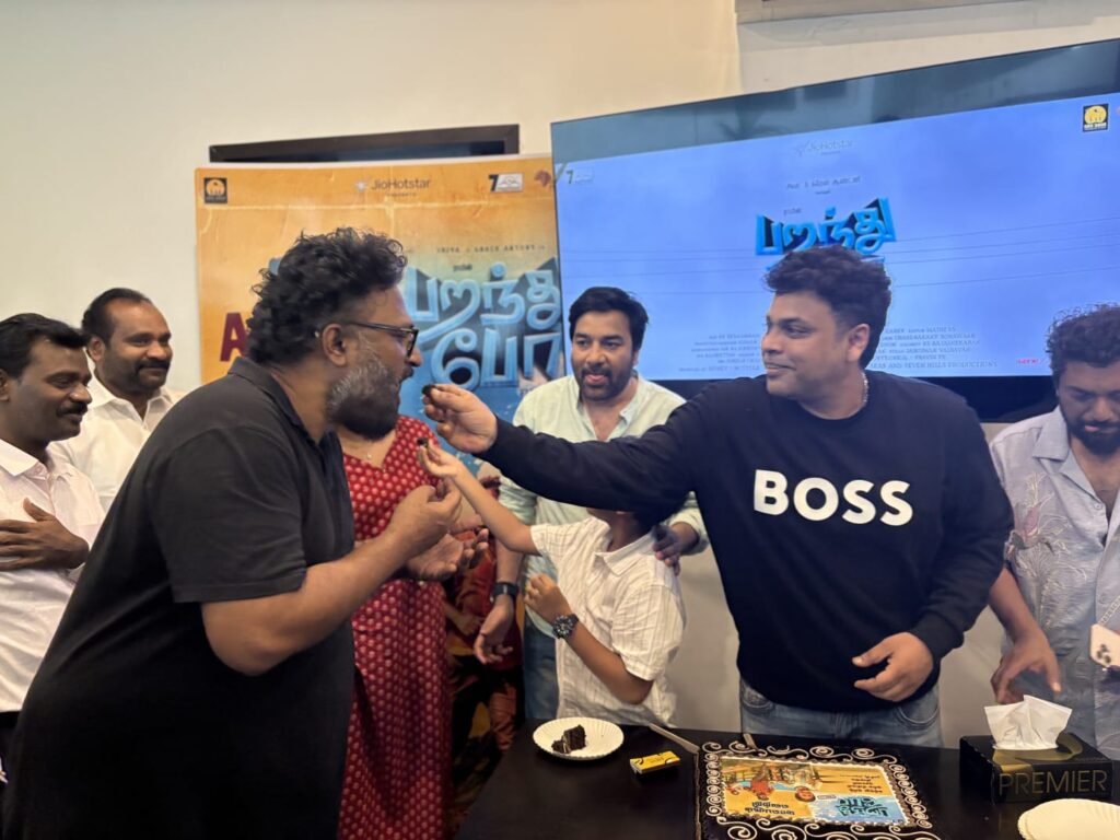 இயக்குநர் ராமின் ‘பறந்து போ’ திரைப்படம் மக்களிடம் பெரும் வரவேற்பையும் திரையரங்குகளில் மாபெரும் வெற்றியையும் பெற்றுள்ளது, மகிழ்ச்சியான இத்தருணத்தில் உலகெங்கிலும் “பறந்து போ” திரைப்படத்தை வெளியீடு செய்த ரோமியோ பிக்சர்ஸ் நிறுவனத்தின் ராகுல் தனது அலுவலகத்தில் படக்குழுவினருடன் வெற்றிக் கொண்டாட்டத்திற்காக சிறப்பு ஏற்பாடு செய்திருக்கிறார்.