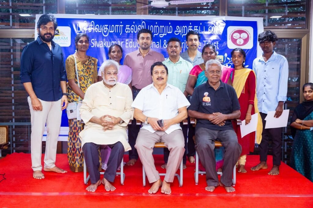 சென்னை, செப்டம்பர் – 05 : திரைக்கலைஞர் சிவகுமார் அவர்கள், தனது கல்வி அறக்கட்டளை மூலம் கடந்த 45 ஆண்டுகளாக, ப்ளஸ்-டூ தேர்வை நிறைவு செய்து கல்லூரி கல்விக்கு செல்லும், மாணவர்களைத் தேர்ந்தெடுத்து பரிசளித்து பாராட்டி கௌரவித்து வருகிறார். மாணவர்களை ஊக்கப்படுத்த, தனது 100-வது படத்தின் போது, சிவகுமார் கல்வி அறக்கட்டளையைத் தொடங்கினார். உதவி தேவைப்படும் தகுதியான மாணவ, மாணவிகளை அடையாளம் கண்டு, தனது அறக்கட்டளை மூலம் பாராட்டி வருகிறார். ‘சிவகுமார் கல்வி அறக்கட்டளை’யின் 46-ம் ஆண்டு நிகழ்வு, சென்னை தியாகராய நகர் அகரம் ஃபவுண்டேஷன் அலுவலக அரங்கில் வைத்து நேற்று மாலை (செப்டம்பர் 04) நடைபெற்றது. விழாவில் 25 மாணவ, மாணவிகளுக்கு தலா ரூ.10,000/- வீதம் மொத்தம் ரூ. 2,50,000/- (இரண்டு லட்சம் ஐம்பதாயிரம் மட்டும்) பரிசளிக்கப்பட்டது. இத்துடன் திண்டிவனம் கல்வி மேம்பாட்டு குழு நடத்தும், ‘தாய்தமிழ் பள்ளிக்கு’ரூ. 1,00.000/- நிதி உதவியும், தருமபுரி, விழுப்புரம் பகுதிகளை தொடர்ந்து தற்போது கிருஷ்ணகிரி மாவட்டம் அய்யூர் வனப்பகுதியில் உள்ள கோடகரை தொடக்கப்பள்ளியில் தன்னார்வலர் ஆசிரியரை நியமித்து கல்வி பணிகளை முன்னெடுத்து வரும் ‘வாழை’ தன்னார்வ அமைப்பிற்கு ரூ. 1,50,000/- நிதி உதவியும் வழங்கப்பட்டது. மூத்த ஓவிய கலைஞர் ‘மணியம்’ செல்வன் அவர்களின் கலை பங்களிப்பை பாராட்டி அவருக்கு ரூ. 1,00,000/- நிதி நல்கை வழங்கப்பட்டது. மேலும், திருவண்ணாமலை மாவட்டம் ஜவ்வாது மலைப் பகுதி மேல்நெல்லிமரத்தூரில் அமைந்திருக்கும் பழங்குடியினர் உண்டு உறைவிட தொடக்கப்பள்ளி மேம்பாட்டு பணிகளுக்கு ரூ. 40,000/- வழங்கப்பட்டது. பரிசளிப்பு நிகழ்வுகளை தொடர்ந்து பரிசு பெற்ற மாணவர்கள் தங்கள் அனுபவங்களைப் பகிர்ந்து கொண்டனர்.