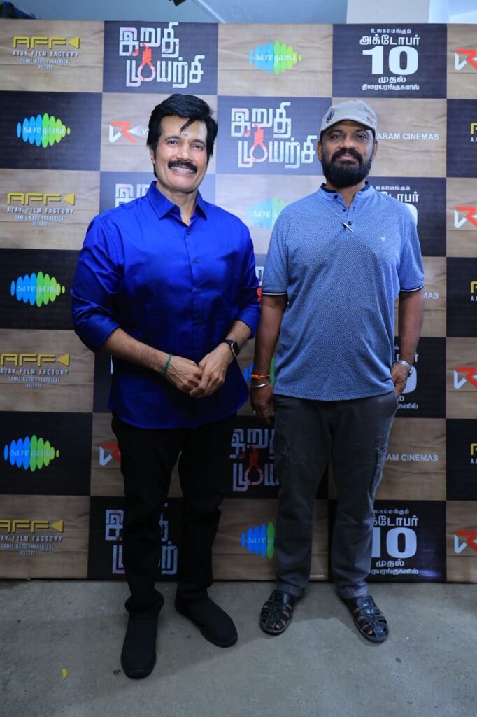 வரம் சினிமாஸ் நிறுவனம் சார்பில் தயாரிப்பாளர் வெங்கடேசன் பழனிச்சாமி தயாரிப்பில் நடிகர் ரஞ்சித் நடிப்பில் இயக்குநர் வெங்கட் ஜனா இயக்கத்தில் உருவாகியுள்ள ‘இறுதி முயற்சி’ எனும் திரைப்படத்தின் இசை வெளியீட்டு விழா சென்னையில் சிறப்பாக நடைபெற்றது. இந்நிகழ்வில் இயக்குநர்கள் ஆர். வி. உதயகுமார் – பேரரசு ஆகியோர் சிறப்பு விருந்தினர்களாக கலந்து கொண்டனர்.